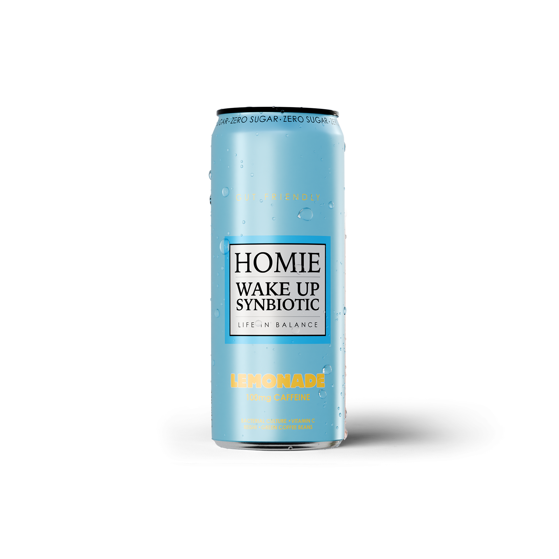 Wake Up Synbiotic from Homie is a carbonated drink with caffeine, live bacterial culture, reishi, chicory root and selected vitamins and minerals.